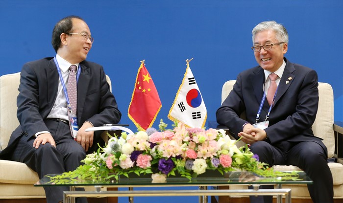 (광주=포커스뉴스) 김종덕(오른쪽) 문화체육관광부 장관이 23일 제7차 ASEM 문화장관회의가 열리고 있는 광주시 동구 국립아시아문화전당에서 딩웨이(丁偉, Ding Wei) 중국 문화부 차관과 접견을 하고 있다. <사진제공=문화체육관광부>