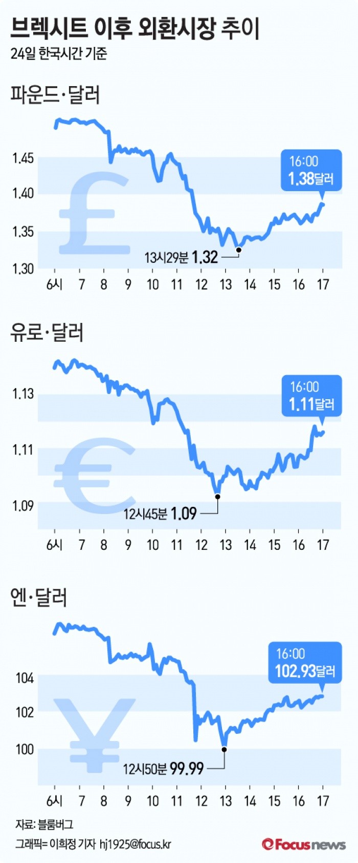 (서울=포커스뉴스) 24일 세계 외환시장은 영국의 유럽연합탈퇴로 인해 큰 변동 폭을 보였다.