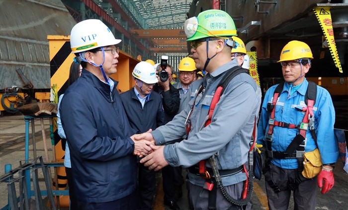 | △ 이기권 장관, 대우조선해양 직원 격려 |