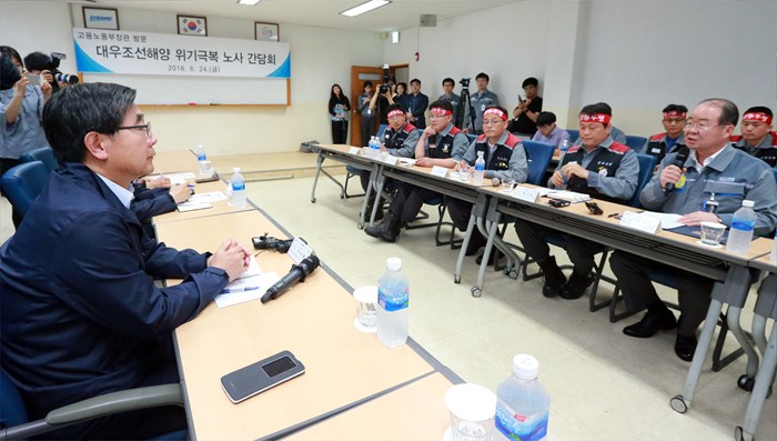 | △ 대우조선해양 의견 수렴하는 이기권 장관 |