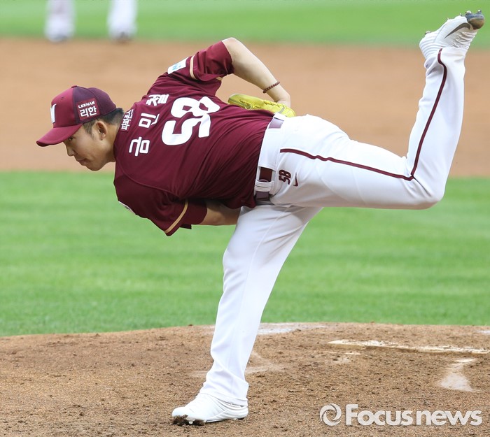 (서울=포커스뉴스) 24일 서울 잠실구장에서 열린 2016 프로야구 넥센-LG 경기에서 1회말 넥센 선발투수 금민철이 투구하고 있다.