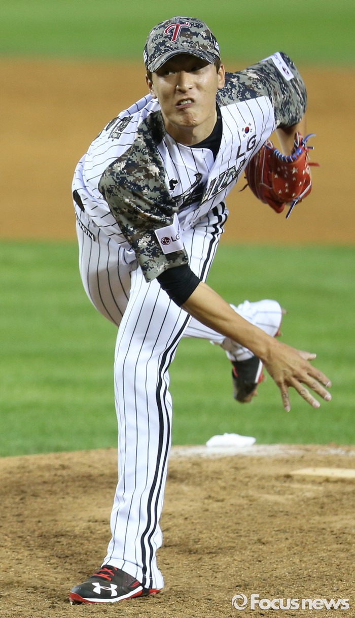 (서울=포커스뉴스) 24일 서울 잠실구장에서 열린 2016 프로야구 넥센-LG 경기 5회초 LG 최동환이 투구하고 있다.