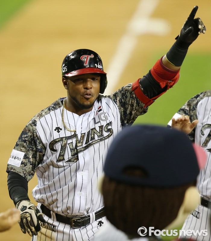 △ 역점 홈런치고 환호하는 LG 히메네스