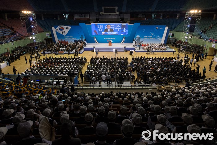 (서울=포커스뉴스) 25일 오전 서울 송파구 잠실실내체육관에서 열린 '6.25전쟁 66주년 기념식'에 참석한 황교안 국무총리가 기념사를 하고 있다.