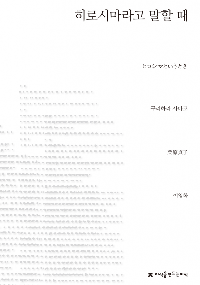 이 외에도 이 시집에는 일본 정치와 위정자들, 그리고 강대국의 권력자에 대한 날카로운 풍자시와 원폭 피해와 핵무기 개발을 규탄하는 시, 방사능 문제, 공해 문제, 일본군의 행위를 고발하는 시 등이 많이 실려 있다. 지식을 만드는 지식. 2만2000원.'히로시마라고 말할 때' 표지.<사진제공=지식을만드는지식>