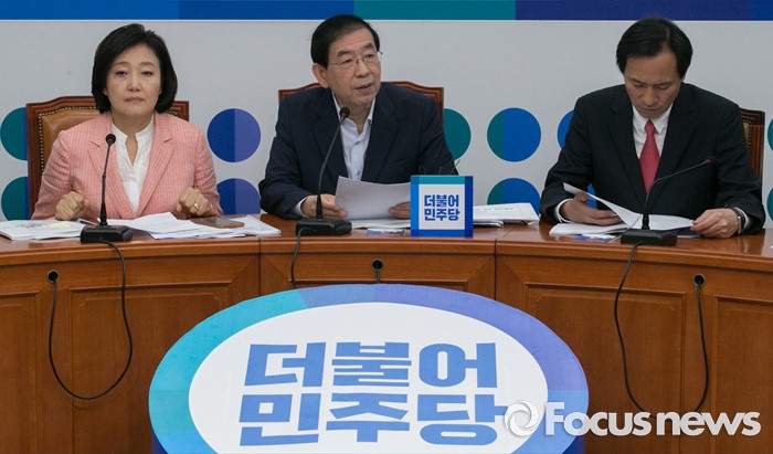 (서울=포커스뉴스) 26일 오전 서울 여의도 국회에서 열린 더불어민주당 시도지사 정책협의회에 참석한 참좋은지방정부위원회 공동위원장인 박원순(가운데) 서울시장이 모두발언을 하고 있다.
