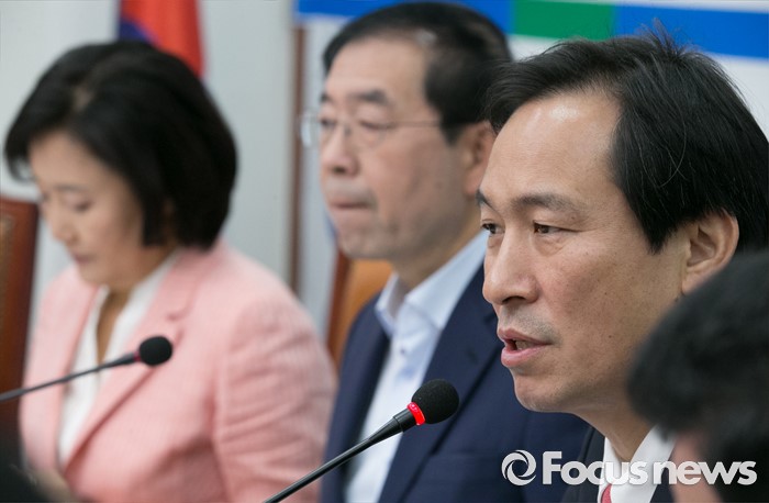 (서울=포커스뉴스) 26일 오전 서울 여의도 국회에서 열린 더불어민주당 시도지사 정책협의회에 참석한 우상호 원내대표가 모두발언을 하고 있다.
