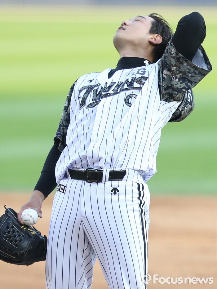 (서울=포커스뉴스) 26일 서울 잠실구장에서 열린 2016 프로야구 넥센-LG 경기 8회초 2사 2루에서 LG 투수 류제국이 투수교체를 기다리고 있다.
