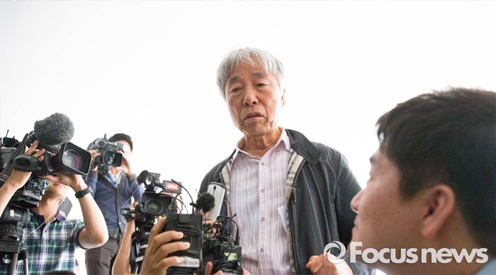 (서울=포커스뉴스) 27일 오전 이우환(80) 화백이 위작 판정이 내려진 작품 13점의 피해자 겸 참고인 신분으로 서울 중랑구 서울지방경찰청 지능범죄수사대에 출석하고 있다.
