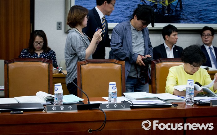 (서울=포커스뉴스) 27일 오전 서울 여의도 국회에서 열린 산업통상자원위원회 전체회의에 불참한 김수민 국민의당 의원의 빈 자리가 보이고 있다.