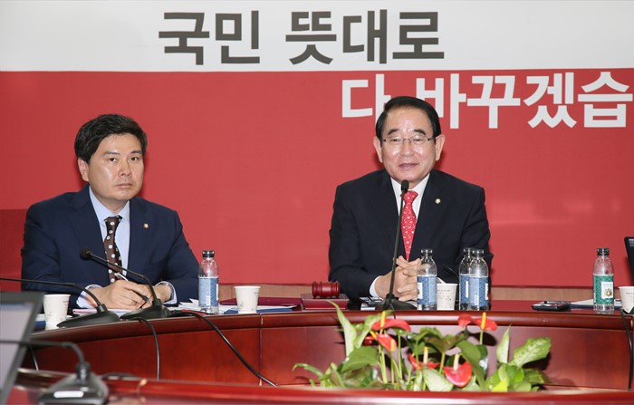 | △ 기자간담회하는 박명재 신임 사무총장 |