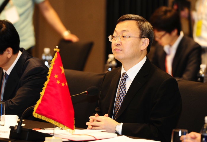(서울=포커스뉴스) 왕셔우원(Wang Shouwen) 중국 상무부 부부장이 27일 서울 동대문 메리어트호텔 그랜드볼룸에서 열린 한중일 FTA 10차 협상 수석대표회의에 참석하고 있다. <사진제공=산업통상자원부>