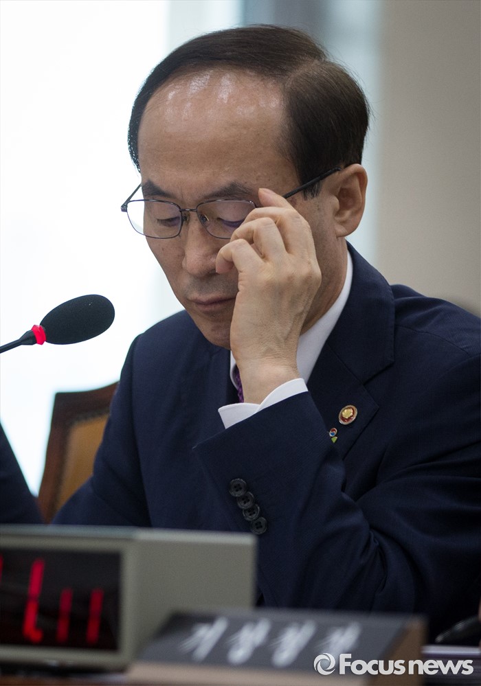 (서울=포커스뉴스) 윤성규 환경부 장관이 27일 오후 서울 여의도 국회에서 열린 환경노동위원회 전체회의에서 의원들로 부터 가습기 살균제 사건 관련 질문을 받고 자료를 찾아보고 있다.