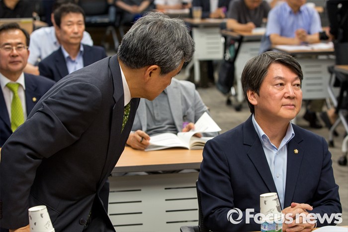 (서울=포커스뉴스) 안철수(오른쪽) 국민의당 상임공동대표가 27일 오후 서울 여의도 국회의원회관에서 '고압지중송전선 전자파로부터 안전한가?'란 주제로 열린 토론회에 참석하고 있다. 사진 왼쪽은 이상돈 국민의당 의원.