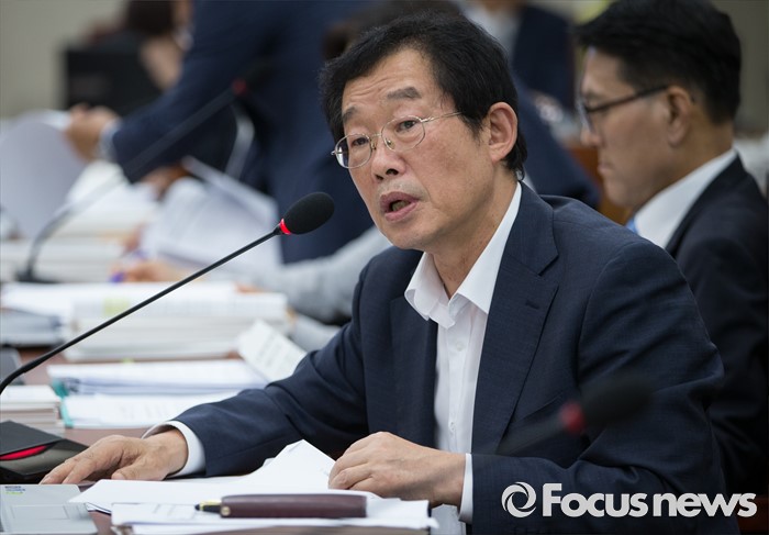 (서울=포커스뉴스) 이용득 더불어민주당 의원이 27일 오후 서울 여의도 국회에서 열린 환경노동위원회 전체회의에서 윤성규 환경부 장관에게 가습기 살균제 사건과 관련된 질문을 하고 있다.
