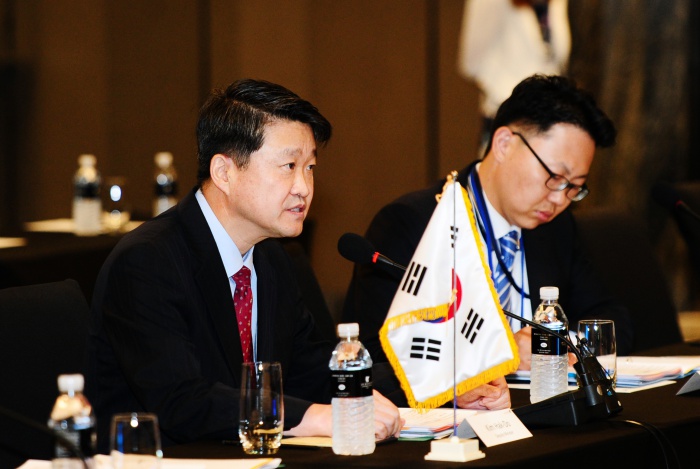 (서울=포커스뉴스) 김학도 산업통상자원부 통상교섭실장이 27일 서울 동대문 메리어트호텔 그랜드볼룸에서 열린 한중일 FTA 10차 협상 수석대표회의에 참석해 논의를 하고 있다. <사진제공=산업통상자원부>