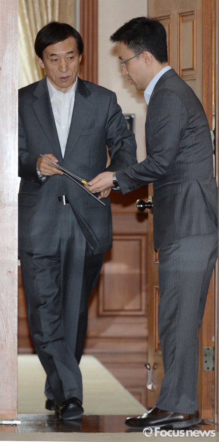 (서울=포커스뉴스) 해외 순방에서 조기 귀국한 이주열 한국은행 총재가 27일 오후 서울 중구 한국은행에서 열린 긴급 간부회의에 참석해 모두발언 하고 있다. 이 총재는 이날 브렉시트(영국의 유럽연합 탈퇴)에 따른 국내외 금융시장 동향 점검 및 대응 방안 논의를 위해 회의를 주재했다.