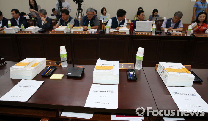 (세종=포커스뉴스) 27일 오후 세종시 정부세종청사 고용노동부 전원회의실에서 열린 최저임금위원회 제6차 전원회의에 앞서 회의자료가 올려져 있다.