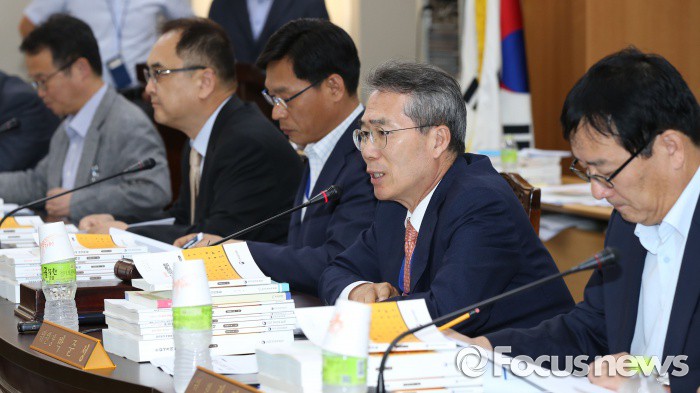 (세종=포커스뉴스) 박준성(오른쪽 두 번째) 최저임금위원회 위원장이 27일 오후 세종시 정부세종청사 고용노동부 전원회의실에서 열린 최저임금위원회 제6차 전원회의를 주재하고 있다.