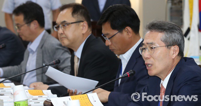 (세종=포커스뉴스) 박준성 최저임금위원회 위원장이 27일 오후 세종시 정부세종청사 고용노동부 전원회의실에서 열린 최저임금위원회 제6차 전원회의를 주재하고 있다.