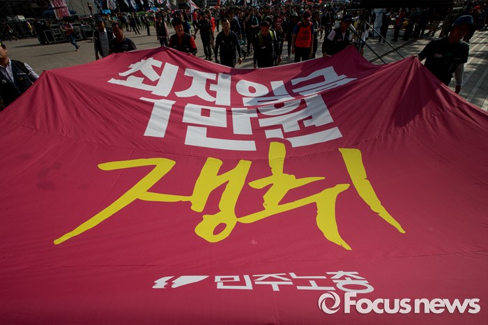 노동계에서는 주말 대규모 집회를 열어 '최저임금 시급 1만원 인상'을 요구하기도 했다.