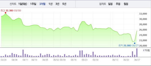 위메이드는 28일 오전 9시28분 현재 전일 대비 17.51%(3800원) 상승한 2만5500원에 거래되고 있다.