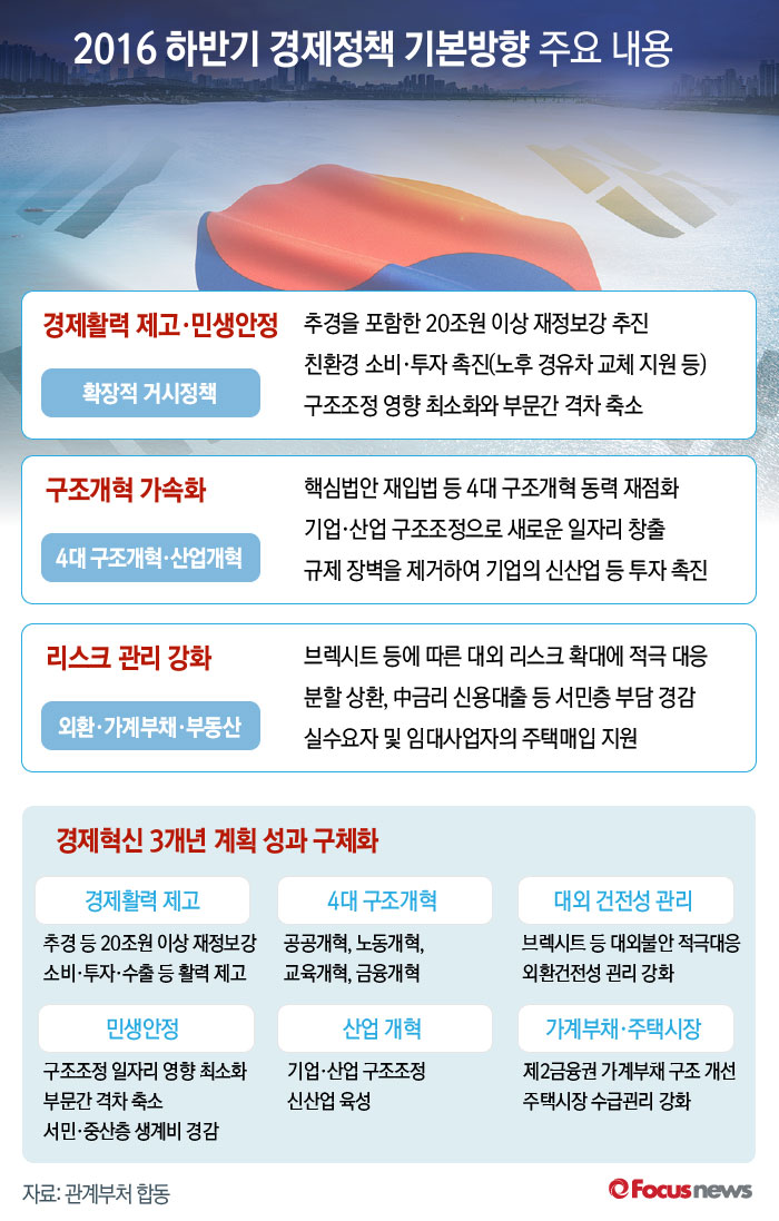 기획재정부를 비롯한 정부합동은 28일 유일호 경제부총리 겸 기재부 장관 주재로 이 같은 내용을 담은 '2016년 하반기 경제정책방향'을 발표했다.