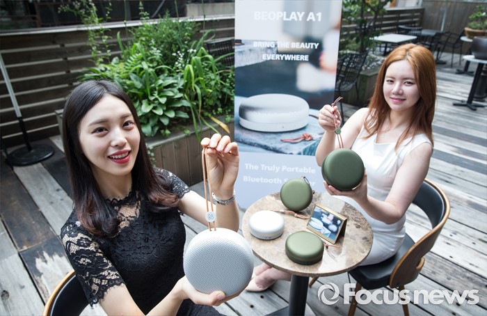 (서울=포커스뉴스) 28일 오전 서울 종로구의 한 카페에서 열린 뱅앤올룹슨의 블루투스 스피커 '베오플레이 A1(Beoplay A1)' 출시 포토세션행사에 모델들이 신제품을 선보이고 있다.