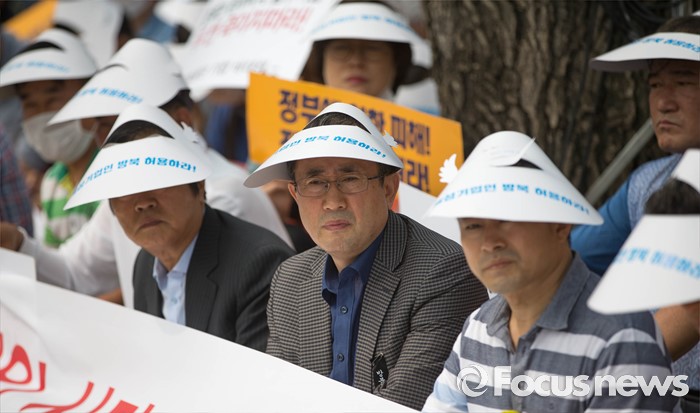 (서울=포커스뉴스) 28일 오전 서울 종로구 정부서울청사 앞에서 개성공단 입주기업 비대위 관계자들이 방북 승인을 촉구하는 집회를 하고 있다.