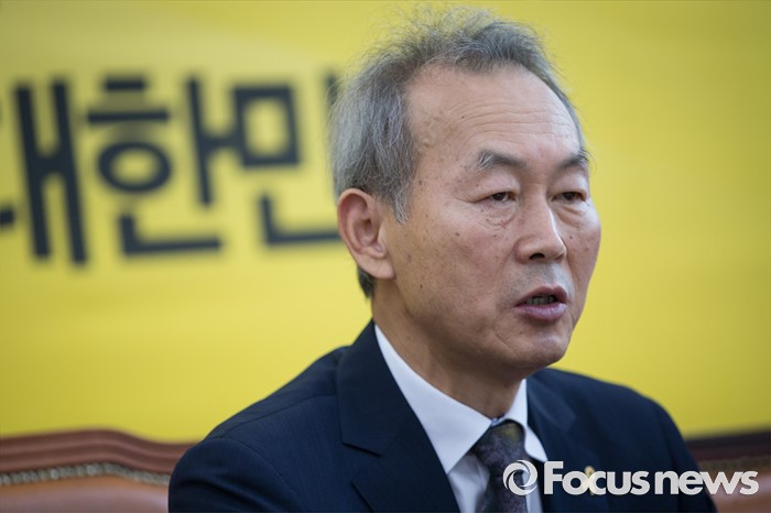 (서울=포커스뉴스) 정의당을 방문한 이석태 세월호 특조위 위원장이 28일 오전 서울 여의도 국회에서 발언하고 있다.