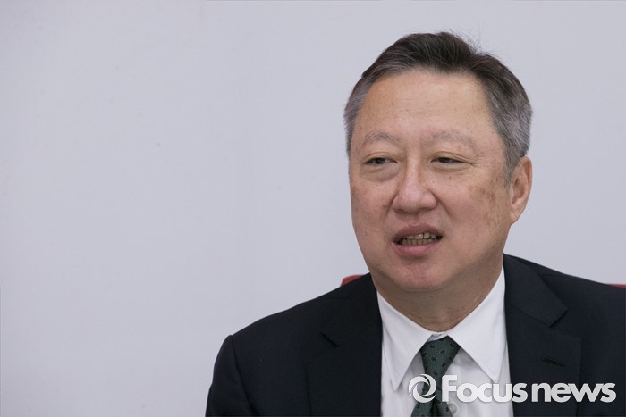 (서울=포커스뉴스) 박용만 대한상공회의소 회장이 28일 오전 서울 여의도 국회를 방문해 정진석 새누리당 원내대표와 면담을 하고 있다.
