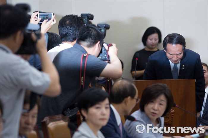 (서울=포커스뉴스) 박승춘 국가보훈처장이 28일 오전 서울 여의도 국회에서 열린 정무위원회에 참석해 업무보고에 앞서 인사 하고 있다.