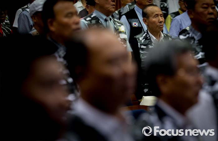 (서울=포커스뉴스) 28일 오전 서울 여의도 국회 헌정기념관에서 열린 '임을 위한 행진곡' 기념곡 지정저지 범국민대책본부 출범식 및 결의대회에 참석한 관련단체 회원 및 참석자들이 애국가를 부르고 있다.