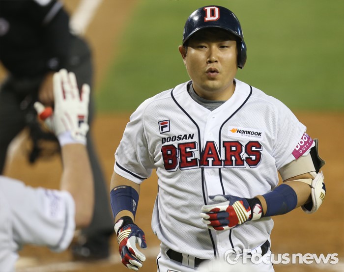 경기 전에는 양의지 친필 사인볼 투척 행사도 연다.(서울=포커스뉴스) 26일 서울 잠실구장에서 열린 2016프로야구 kt-두산 경기 5회말, 두산 선두타자 양의지가 좌월 솔로 홈런을 날리고 홈인하고 있다. 2016.05.26 우정식 기자