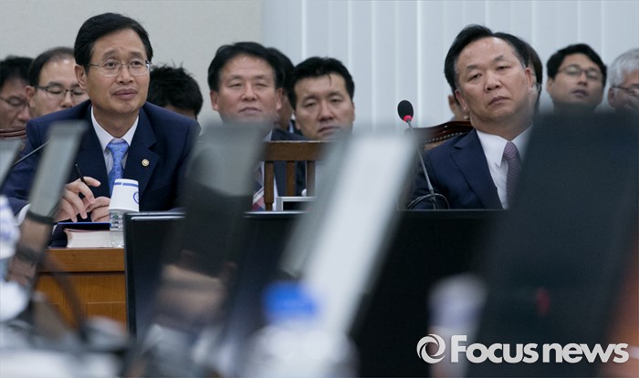 (서울=포커스뉴스) 28일 오후 서울 여의도 국회에서 열린 안전행정위원회 전체회의에 참석한 김용희 중앙선거관리위원회 사무총장이 의원들의 질의에 답하고 있다. 오른쪽은 김동극 인사혁신처장.