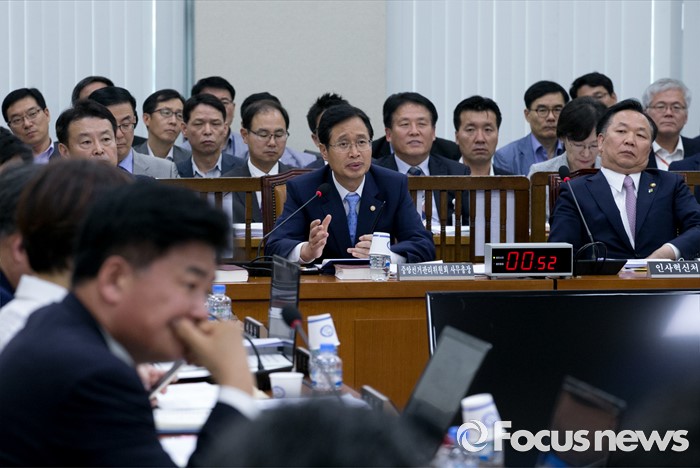 (서울=포커스뉴스) 28일 오후 서울 여의도 국회에서 열린 안전행정위원회 전체회의에 참석한 김용희 중앙선거관리위원회 사무총장이 의원들의 질의에 답하고 있다. 오른쪽은 김동극 인사혁신처장.