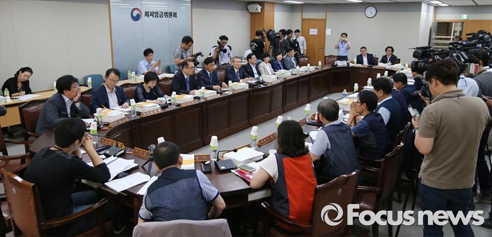 (세종=포커스뉴스) 박준성 최저임금위원회 위원장이 28일 오후 세종시 정부세종청사 고용노동부 최저임금위원회 전원히의실에서 열린 최저임금위원회 제7차 전원회의를 주재하고 있다.