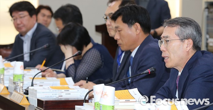(세종=포커스뉴스) 박준성 최저임금위원회 위원장이 28일 오후 세종시 정부세종청사 고용노동부 최저임금위원회 전원히의실에서 열린 최저임금위원회 제7차 전원회의를 주재하고 있다.