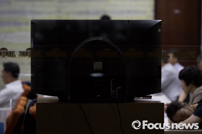 (서울=포커스뉴스) 28일 오후 서울 여의도 국회에서 상임위원회에 업무 지원을 나선 관계기관 공무원들이 전체회의가 열리는 회의실 밖을 지키며 업무를 보고 있다.