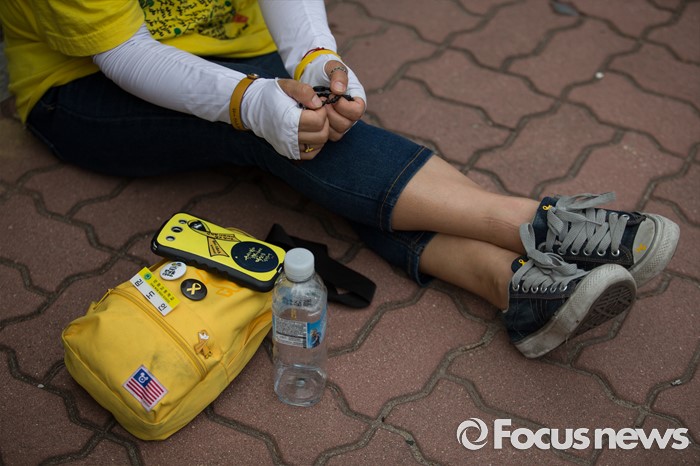 (서울=포커스뉴스) 416가족협의회와 4월16의약속국민연대가 28일 오후 서울 여의도 국회 앞에서 20대 국회 6월 임시국회에 특별법 개정을 촉구하는 기자회견을 하고 있다. 한 참석자가 기자회견 장소를 벗어나 잠시 휴식을 취하고 있다.