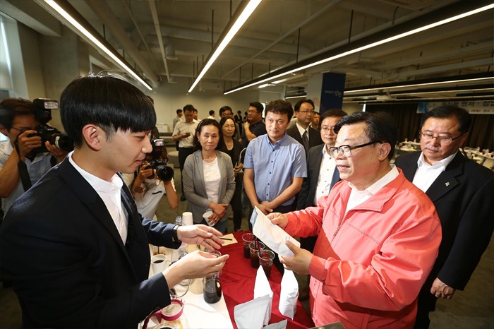 (춘천=포커스뉴스) 국민공감과 소통을 위해 현장을 찾은 이동필 농림축산식품부 장관이 28일 강원도 춘천시 강원창조경제혁신센터에서 열린 농식품 벤처창업기업 간담회를 마치고 전시된 창업지원 성과물을 둘러보고 있다. <사진제공=농림축산식품부>