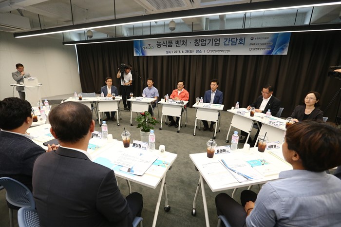 (춘천=포커스뉴스) 국민공감과 소통을 위해 현장을 찾은 이동필 농림축산식품부 장관이 28일 강원도 춘천시 강원창조경제혁신센터에서 열린 농식품 벤처 창업기업 간담회를 주재하고 있다. <사진제공=농림축산식품부>