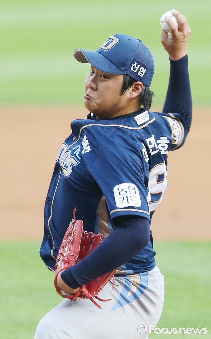 (서울=포커스뉴스) 28일 서울 잠실구장에서 열린 2016 프로야구 NC-두산 경기에서 1회말 NC 선발투수 이민호가 투구하고 있다.