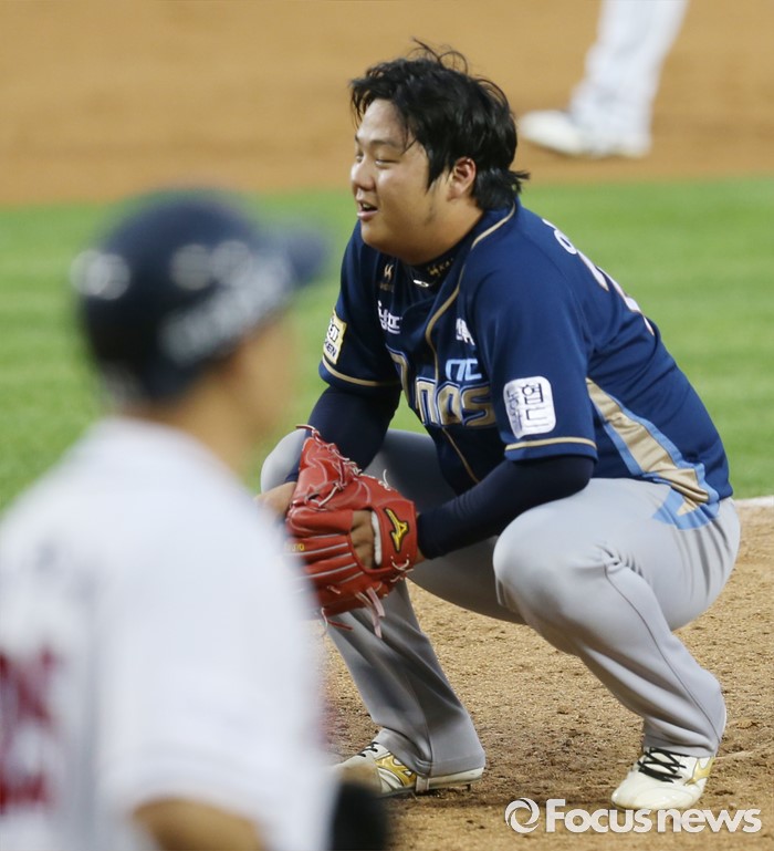 △ 아쉬워하는 NC 투수 이민호