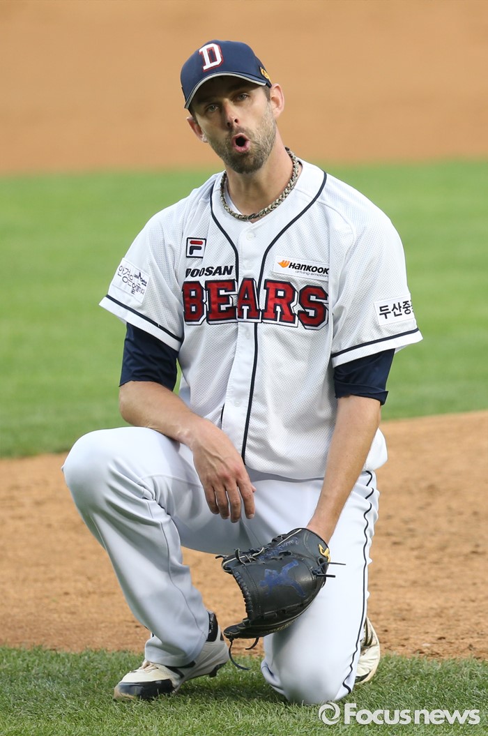 (서울=포커스뉴스) 28일 서울 잠실구장에서 열린 2016 프로야구 NC-두산 경기 4회초 무사 1,2루에서 두산 투수 니퍼트가 볼 판벙에 아쉬운 표정을 짓고 있다.