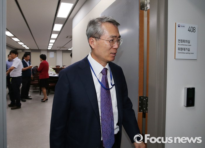 (세종=포커스뉴스) 최저임금 결정 법정 시한인 28일 저녁 세종시 정부세종청사 고용노동부 최저임금위원회 전원회의실에서 열린 전원회의 중 정회가 선언돼 박준성 위원장이 회의장을 나서고 있다.