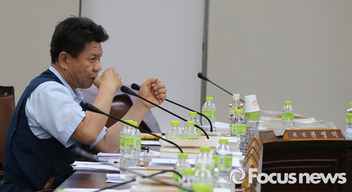 (세종=포커스뉴스) 최저임금 결정 법정 시한인 28일 저녁 세종시 정부세종청사 고용노동부 최저임금위원회 전원회의실에서 열린 전원회의 중 정회가 선언된 가운데 노동계 위원이 목을 축이고 있다.