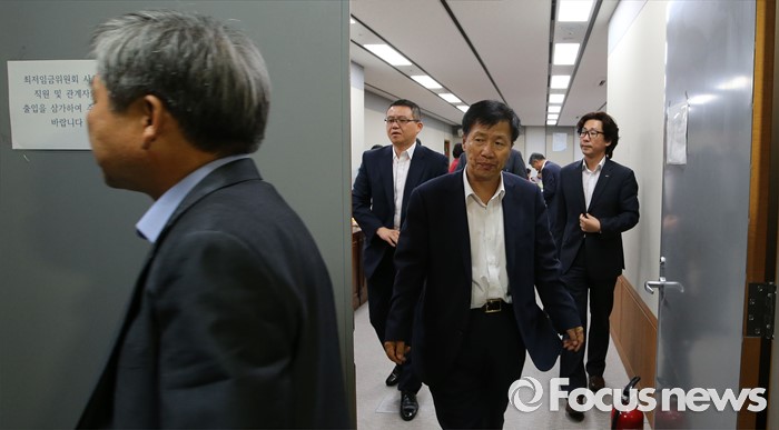 (세종=포커스뉴스) 29일 세종시 정부세종청사 고용노동부 최저임금위원회 전원회의실에서 위원들이 회의를 마치고 회의장을 나서고 있다. 최저임금 결정 법정 시한인 28일을 넘겼지만 최저임금 합의를 하지 못했다. 다음 8차 회의는 7월 4일에 열린다.