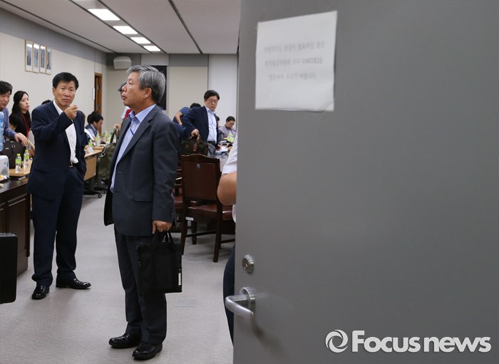 (세종=포커스뉴스) 29일 세종시 정부세종청사 고용노동부 최저임금위원회 전원회의실에서 위원들이 회의를 마치고 회의장을 나서고 있다. 최저임금 결정 법정 시한인 28일을 넘겼지만 최저임금 합의를 하지 못했다. 다음 8차 회의는 7월 4일에 열린다.