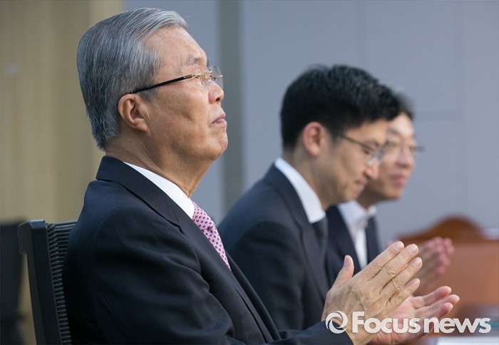 (서울=포커스뉴스) 29일 오전 서울 여의도 국회 의원회관에서 열린 아젠다 2050 창립총회에 참석한 김종인(왼쪽) 더불어민주당 비대위 대표 등 의원들이 박수치고 있다.